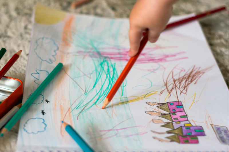 ほかにも、クレヨンで殴り書きをするようにもなり、遊びがより広がります。